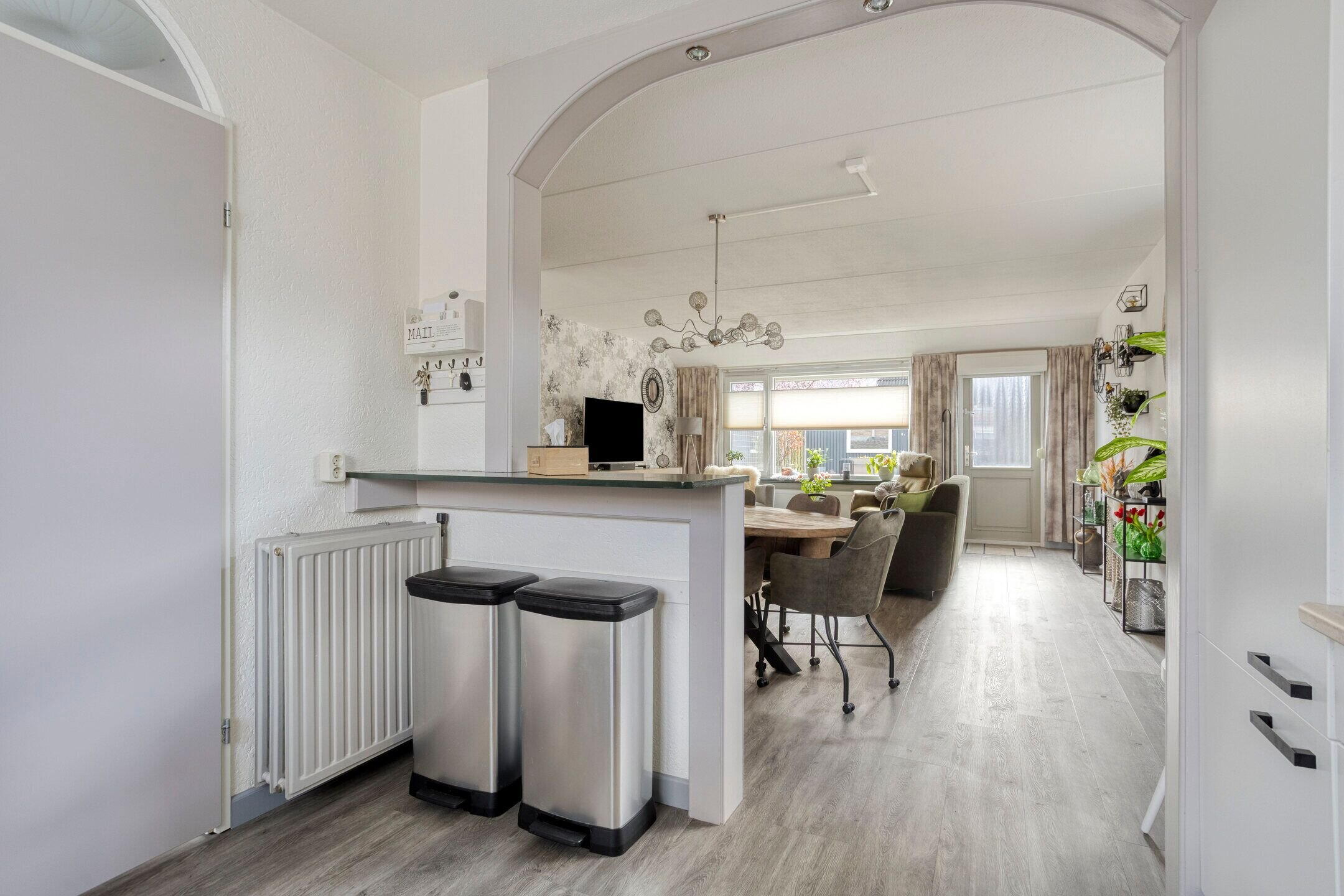 Via de entree komt u in de hal met meterkast en toilet met fontein. Vanuit hier bereikt u de lichte woonkamer met praktische trapkast. De woonkamer heeft een prettige lichtinval en een fijne sfeer. Aan de voorzijde bevindt zich de L-vormige keuken, voorzien van onder andere een oven, inductiekookplaat, koelkast en diepvries. De woonkamer en keuken zijn afgewerkt met een moderne PVC-vloer.