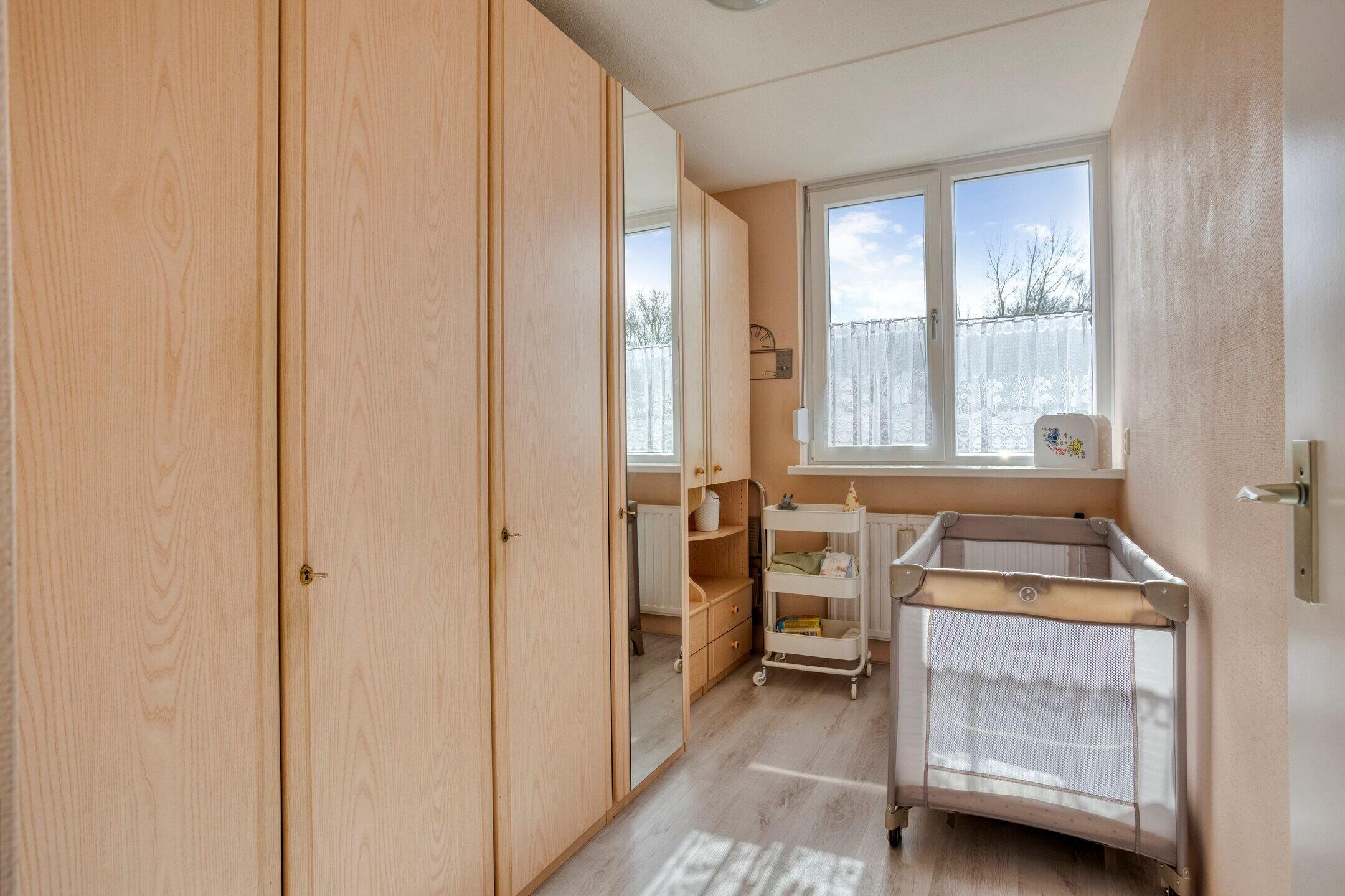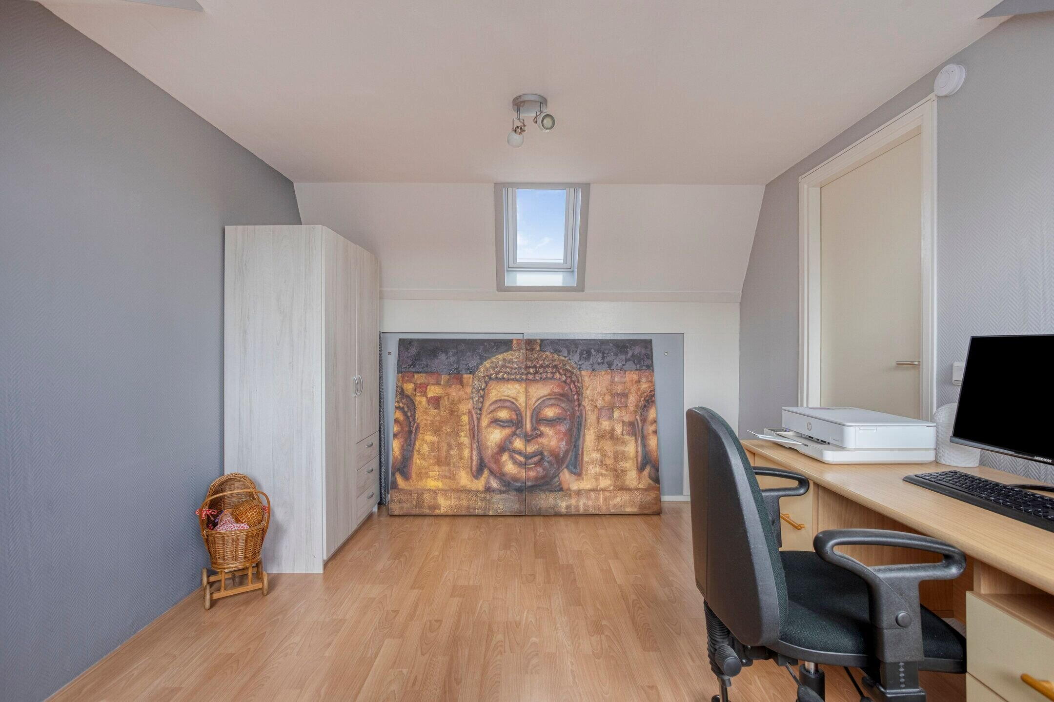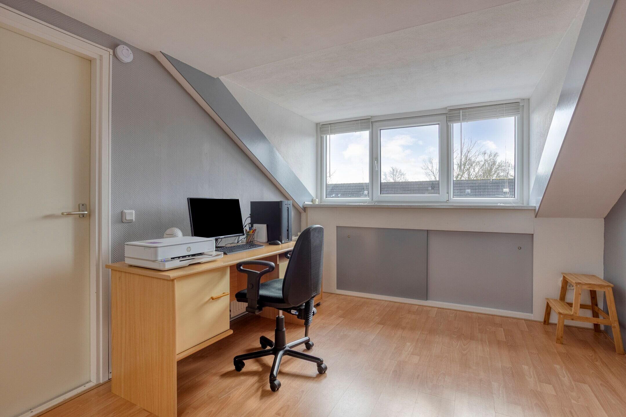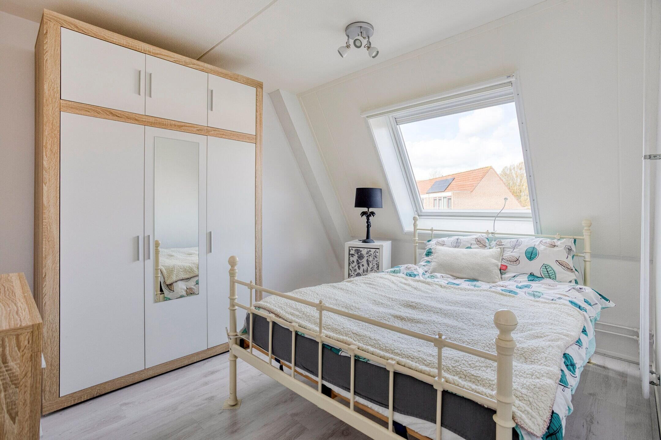 Via een vaste trap bereikt u de tweede verdieping. Hier bevinden zich de overloop met aansluitingen voor de wasmachine en de cv-installatie, en een ruime vierde slaapkamer met dakkapel en laminaatvloer. Deze verdieping biedt een fijne extra ruimte, bijvoorbeeld als slaapkamer, werk- of hobbykamer.