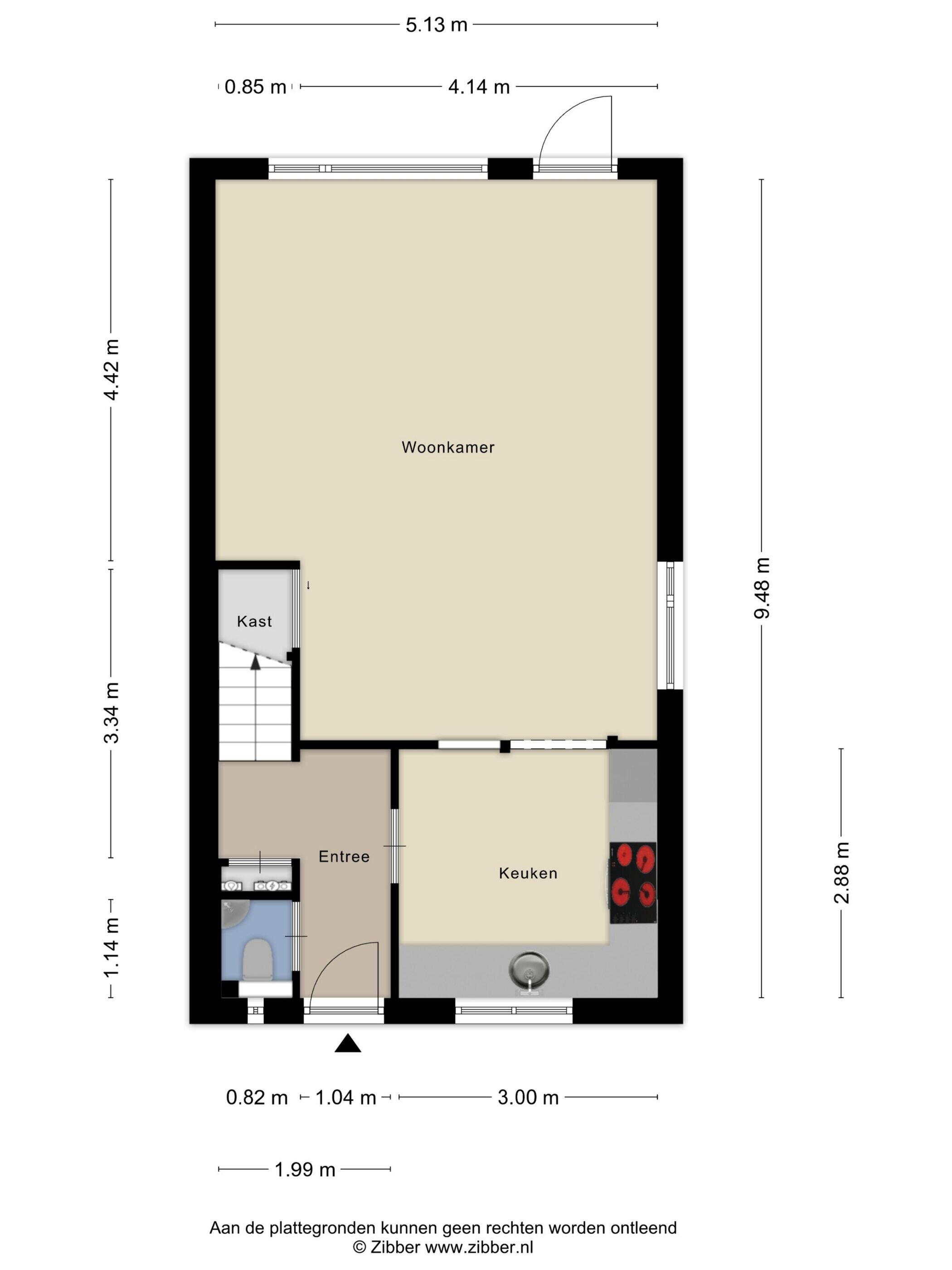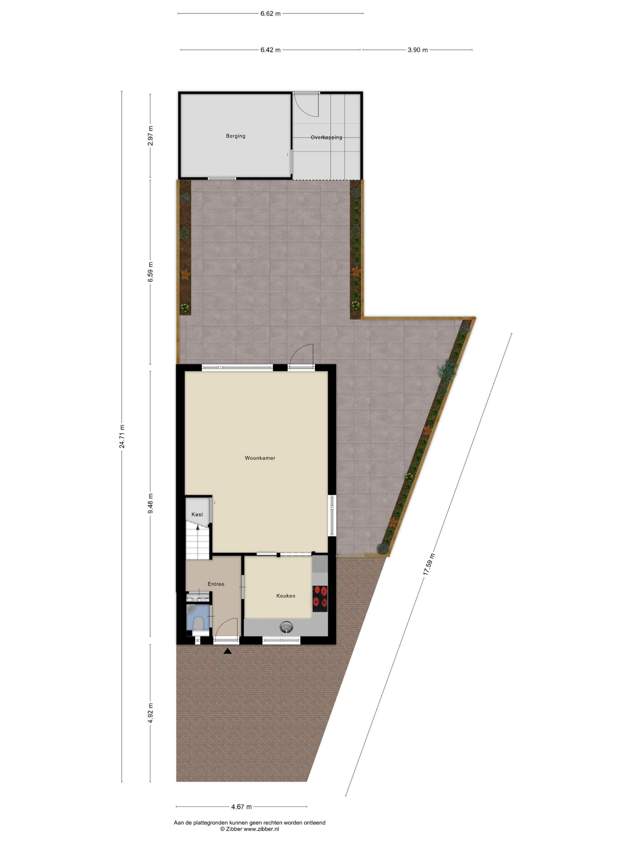 - 48 m² (6,60 meter diep en 10,00 meter breed)